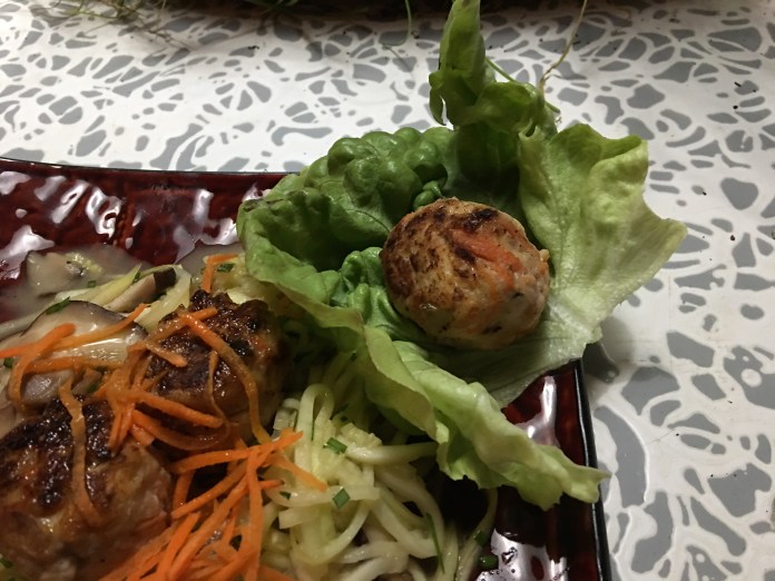 We like to watch channel 103 otherwise known as MSNBC. So while watching tv in the kitchen I prepared our favorite dinner. I call “Chicken Meatball Lettuce Wraps.”